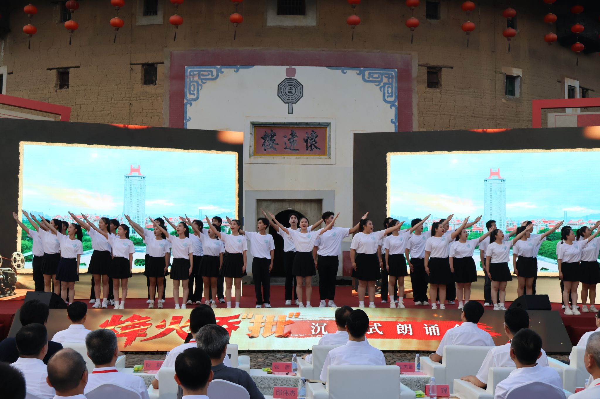 在中国人民抗日战争暨世界反法西斯战争胜利80周年之际,8月12日,《烽火侨“批”》沉浸式朗诵会暨纪录片开播仪式在漳州市南靖县“怀远楼”前举行。省委常委、宣传部部长张彦出席活动并致辞,校党委书记邱伟杰参加活动,我校沐音合唱团在活动中献唱原创作品《南风依旧》。