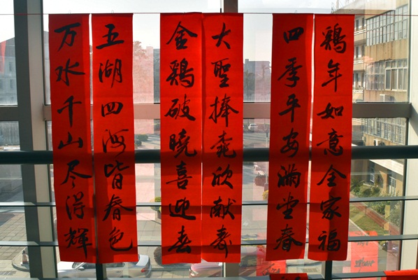 1月4日下午,财经学院会计系在古龙大礼堂门厅举办“挥毫写春意,泼墨送吉祥”写春联活动。学院领导及有关师生参加了此次活动。