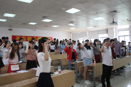 五四前夕,为进一步弘扬“爱国、进步、民主、科学”的“五四”精神,5月3日下午,我校诚毅学院团委组织34名新团员举行入团宣誓活动。学院全体新团员、“青马俱乐部”全体学员在团旗下庄严宣誓,重温入团誓词。