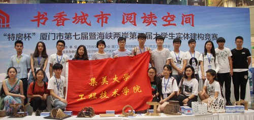 5月13日-14日,以“书香城市,阅读空间”为主题的厦门市第七届暨海峡两岸第二届大学生实体建构竞赛决赛在厦门市湖里万达广场举行,来自海峡两岸的10所高校25支队伍同台竞技。经过激烈角逐,我校工程技术学院曾珍惠小组的《锦簇》和符梦媛小组的《新桐》荣获佳作奖;林煌斌老师获“优秀指导老师”称号,陈豪获“优秀组织者”称号,陈廷获“优秀志愿者”称号。