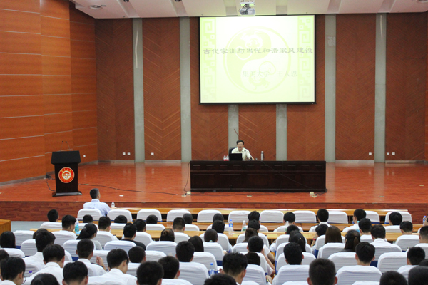 讲座中,王人恩旁征博引、解读经典,介绍了家训概说,追溯“家训”一词的源缘,并从“为人处世、待人接物之道;读书治学、立身成才之道;和睦亲邻、理家聚财之道;为官仕宦、经邦济世之道”等古训全面阐述了仁、义、礼、智、信、忠、恕、孝、悌、俭的中华治家美德,及古代家训对于当代和谐家风构建的借鉴意义。