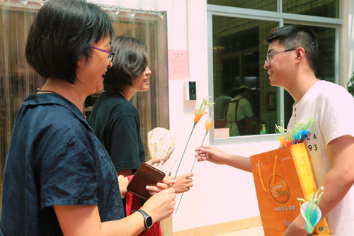 在活动过程中,来自不同学院、不同岗位的老师们在学生们感恩的目光中收下了手工花和贺卡,也收下了集大学子的问候与祝福。