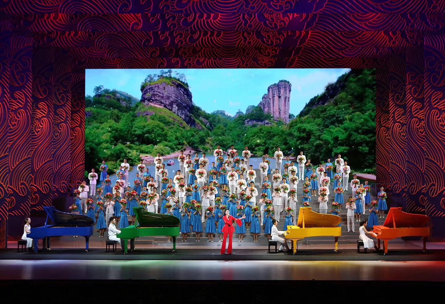 9月4日晚,厦门会晤文艺晚会在厦门闽南大戏院上演。我校音乐学院40名学生参与了本场晚会第五篇章——《扬帆未来》交响合唱,第三篇章——舞蹈《惠女风情》和《畲族婚典》的后场伴唱,展现了集大学子的青春风采。
