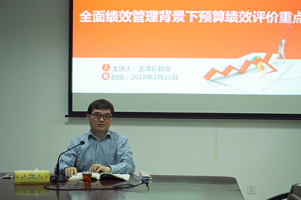 讲座中,王泽彩从今年全国两会入手,结合具体事例分析了财政制度改革、全面绩效管理、税制改革这三部分内容,并就预算编制、绩效研究、预算公开等方面的学术研究提出了指导意见。王泽彩将自身工作经历与现代社会发展现状相结合,对2018年两会文件进行解读并发表了自身见解,强调加强绩效指标体系建设、推进预算改革对现代社会发展的重要性。
