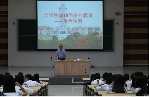 日前,文学院召开会议对2018届毕业生开展毕业教育,引导毕业生树立正确的从业观、廉洁观、迈好人生职场第一步。学院副院长李时学、党委副书记陈娟、毕业班辅导员和2018届毕业生参加会议。