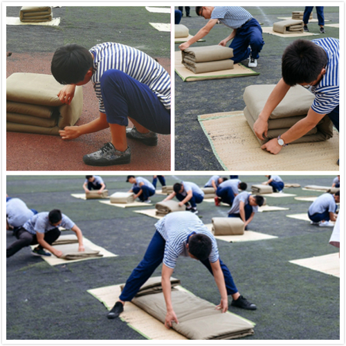 在赛场上,来自航海15、16、17级共81位同学,发扬严谨、细致的精神,熟练地把被子叠好。空军退伍士兵、航海技术17级新生代表还进行了叠被子技能展示和交流。