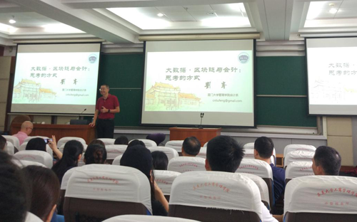 讲座中,刘峰结合大数据与智能化的发展趋势,阐述了大智移云时代下会计行业的恐慌和压力与日俱增的现实,提出通过持续学习减缓焦虑的方法;生动形象地与学院师生分享了对大数据与区块链的理解;提出会计是解决人类信任的工具之一,并分析区块链技术会冲击会计的原因。