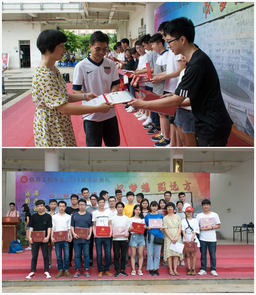 毕业典礼上,学院副院长郑佳春宣读了2018届优秀毕业生表彰决定,各专业教研室主任为优秀毕业生颁发了证书。学院党政领导分别致辞,表达了对毕业生的真诚祝福。