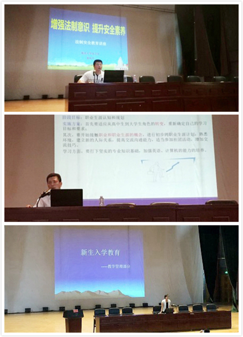 校保卫处处长董振寿为新生做了“增强法制意识 提升安全素养”的主题讲座。他以分析校园周边环境为切入点,阐述了交通安全、宿舍安全、水电安全、人身财产安全、网络信息安全等方面内容,进一步提升了同学们的安全防范意识。