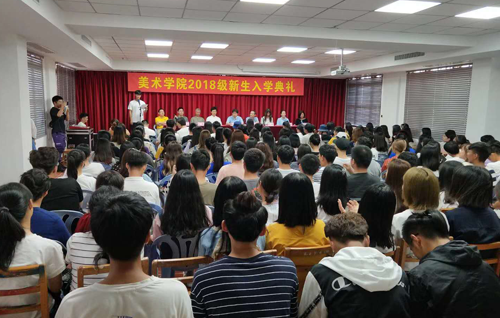 近日,美术学院举行新生入学典礼。学院领导、全体科级干部、各教研室主任、全体辅导员、新生班主任和2018级全体本科生、研究生出席了典礼。
