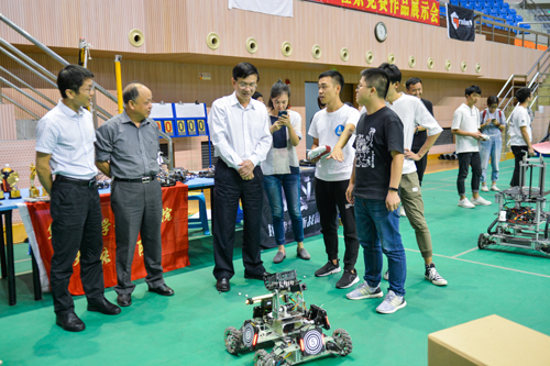近日,诚毅学院在诚毅体育馆举办电子类竞赛作品展示会。学院院长叶光煌,院长助理、教务部和信息工程系相关负责人,辅导员及信息工程系2018级新生观看了展示会。