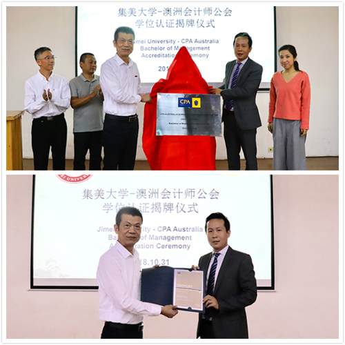澳洲会计师公会向财经学院颁发了学位认证证书,双方共同为学位认证揭牌。