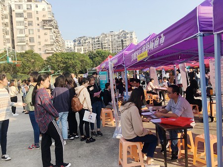 12月26日下午,食品与生物工程学院在水产学院篮球场举办了2019届毕业生冬季双选会,辉瑞投资有限公司、中国市政工程华北设计研究总院有限公司、厦门古龙食品有限公司等58家企业参会。