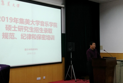 3月23日下午,音乐学院开展2019年硕士研究生招生录取规范、纪律和保密培训,学院全体教职员工参加了培训。培训由学院党委书记王空军主持。