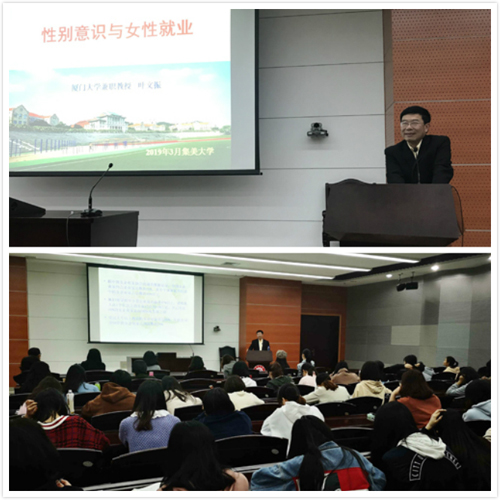讲座中,叶文振聚焦女性就业问题,阐述女大学生就业研究的性别意义,以更为广阔的经济学、社会学和女性学的跨学科交叉视角切入性别意识与女性就业的研究,提出两个基于社会性别建构和性别文化理论基础的解释框架。叶文振用生动的例子阐述了在原生家庭到新生家庭的迁移过程中女性的困境,及女性在教育、就业、婚姻与性别意识等方面的现状;运用大量报告数据展示女性就业的制约因素与职场的性别歧视;讲述了女性早期梦想的树立与拥有自己的性别自信对成长、成功的重要性;结合国际女经济学家等实例展示先进性别意识对女性的就业意义,为如何走出女性就业困境提出非对抗的柔性化的建设性意见。