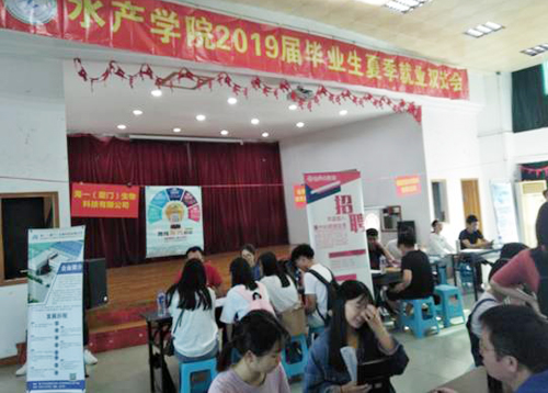 近日,水产学院举办2019届毕业生夏季就业双选会,来自全国各地的34家水产企业参会并招收暑假和生产实习学生,为学院学生提供近500个就业岗位。学院2019届毕业生和部分16级、17级学生参加了双选会。