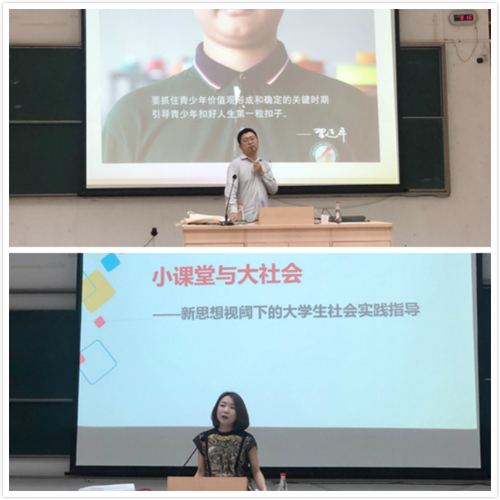 在题为“习近平新时代中国特色社会主义思想与中华优秀传统文化”的讲座中,肖仕平教授讲述了习近平新时代中国特色社会主义思想的科学体系中的民本思想。吴沁芳教授以“新时代美好生活的价值追寻”为主题,分享了何谓美好生活、美好生活的价值维度、新时代美好生活的价值目标。在题为“青年如何扣好人生第一粒扣子”的讲座中,董立功博士讲述了习近平的七年知青岁月,激励学生确定人生清晰目标、勤奋学习、博览群书、积极投身社会实践。在读博士唐娜以“小课堂与大社会”为题,讲述了新思想视阈下的大学生社会实践中要关注的热点话题和社会现象及如何写好暑期社会实践论文。