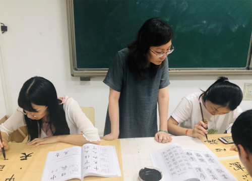 6月24日晚,著名书法家泉州师范学院黄鸿琼教授在吕振万书法室,为我校教师教育学院2018级小学教育硕士研究生做书法艺术讲座。
