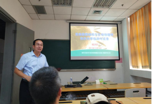 近日,福建师范大学杨洪钦教授应邀来理学院作题为“活细胞微结构与生物物理特性的光学检测与成像”的学术报告。学院物理系老师和学生代表聆听了报告。