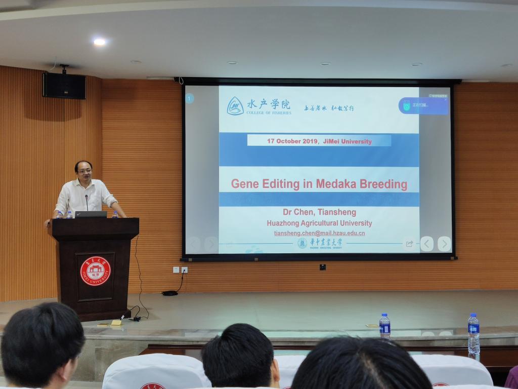 近日,华中农业大学陈天圣教授来水产学院进行学术交流,并为学院师生作了题为“基因编辑技术的进展和在鱼类的应用”的学术报告。