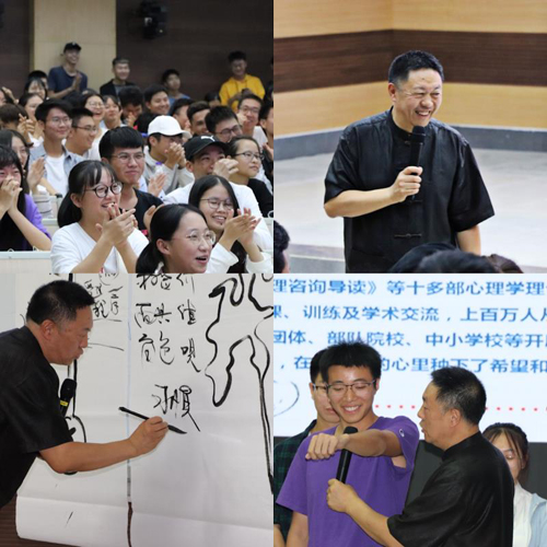 讲座中,格桑泽仁用情境演示的方法生动描绘了“自”与“我”在人体内对话的过程,阐释抑郁、自闭、人格缺陷、精神分裂等心理疾病产生的原理;通过梳理“自”“我”与“事”“情”“物”的关系,引导学生学会对话自我、悦纳自我,并通过特定行为方式带领心灵走出困境。