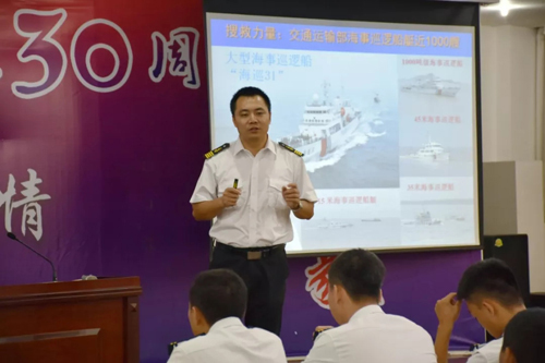 讲座中,杨永城解读了《中华人民共和国突发事件应对法》,普及国家海上搜救部际联席会议制度,让大家充分了解船员对于海上安全的重要性;介绍了中国海上搜救中心,对其搜救职责、搜救制度等进行了讲解。杨永城还结合相关事故案例,分析我国搜救应对措施,展示了近年来海上搜救工作取得的成绩;分享了自己的海上搜救工作经历。