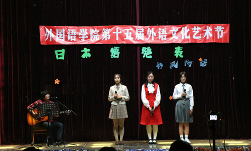 活动现场,日语歌大合唱、班级欢快的小组唱、日语童话城堡小舞台剧、日本茶艺展示、舞蹈串烧、日语配音等精彩的节目,充分展示了学院学生的才艺和对专业的热爱。