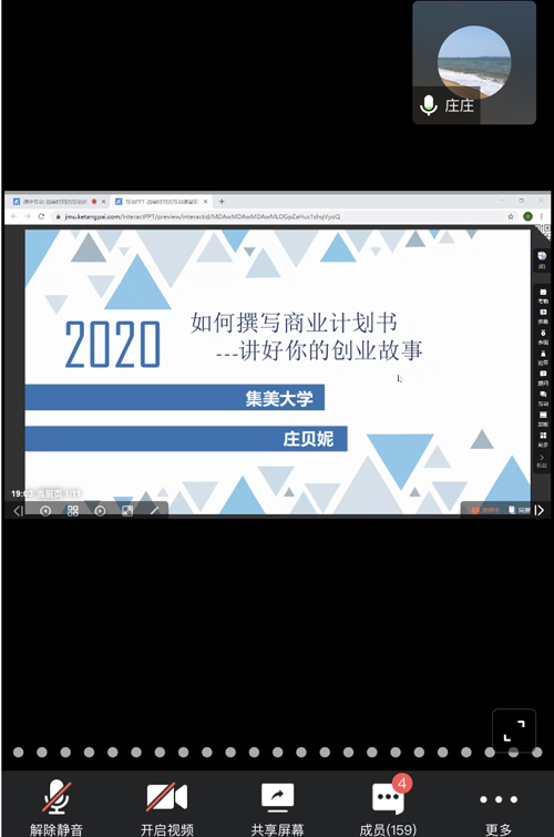 为备战2020年第十届全国大学生电子商务“创新、创意及创业”挑战赛(以下简称“三创赛”),4月26日,工商管理学院利用课堂派和腾讯会议平台举办“如何撰写一份优质的商业计划书”“三创赛”赛前培训讲座。