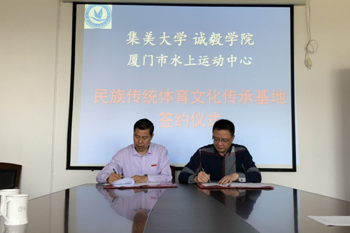 根据《教育部关于开展中华优秀传统文化传承基地建设的通知》精神,4月29日上午,诚毅学院与厦门市水上运动中心共建“民族传统体育文化传承基地”签约仪式在厦门市水上运动中心举行,以支持高校围绕民族传统体育等传统文化项目建设传承基地,推进中华优秀传统文化全方位融入高校教育,促进民族传统体育学科专业建设。