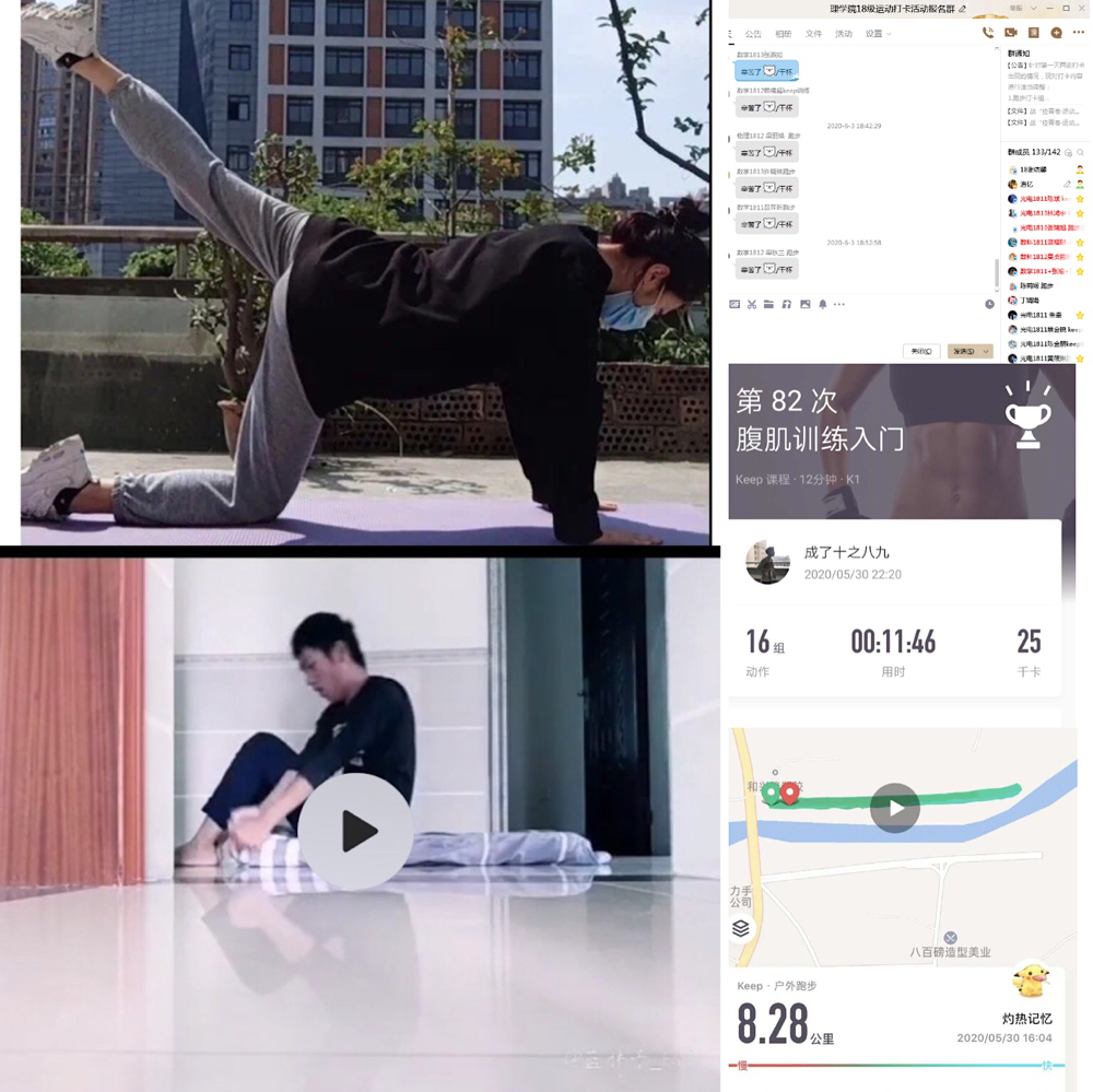 为落实学校体育工作部署,提高学生疫情期间的体育修养和身体素质,近期,理学院2018级开展“战疫青春,运动打卡”线上健身活动,活动自4月开始,持续近两个月。