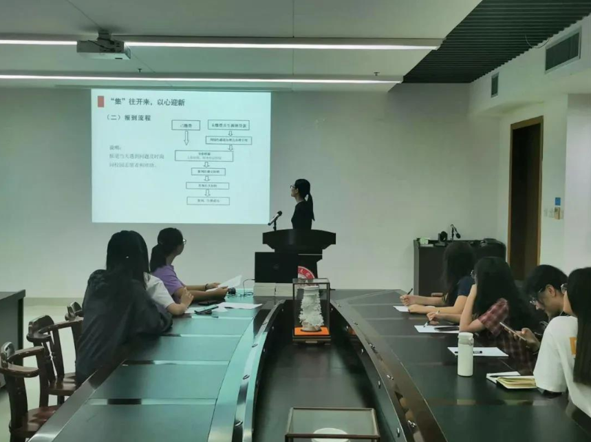 会上,各位班级助理首先向新生进行了自我介绍。接着,学生代表王文琴介绍了学校的基本概况和报到当天的具体流程。最后,2020级辅导员赵艳敏对新生进出校园、报到流程、防疫安全、信息安全、军训安全等方面进行了详细的讲解,同时告知新生家长“云关注”新生入学报到的渠道,邀请各位家长在疫情结束后赴校共览集大校园风光。