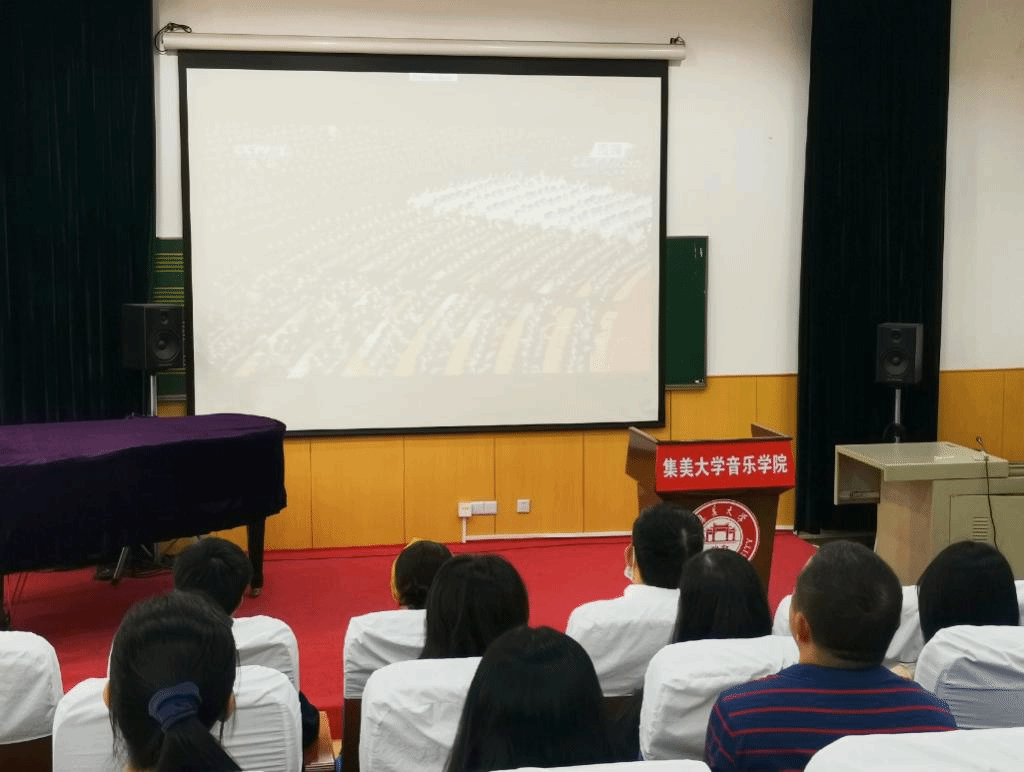 为弘扬抗美援朝精神,传承爱国主义精神,10月23日,音乐学院组织理论学习中心组成员、师生党员和入党积极分子代表集中收看了纪念中国人民志愿军抗美援朝出国作战70周年大会,学院广大师生也积极通过电脑、手机等方式,认真收听收看大会直播,深刻领会和学习习近平总书记重要讲话精神。