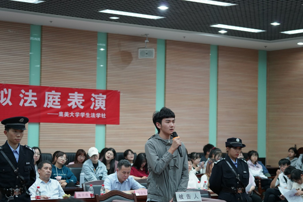此次新生模拟法庭表演的案件素材取自于近日引起广泛关注的真实案例”李心草案”,所有角色均由法学社的学生担任。模拟法庭庭审严格遵照刑事案件审理的规定,法庭调查、法庭辩论、被告人最后陈述、当庭宣判等依次进行,合议庭、公诉人、辩护人、被告人各司其职。整个庭审表演过程紧凑有序,各角色充分发挥各自的作用,生动模拟了法庭庭审的真实场景。