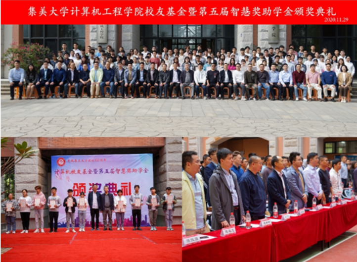 11月29日上午,计算机工程学院在陆大楼举办计算机校友基金暨第五届智慧奖助学金颁奖典礼。学院领导、校友基金会理事代表、获奖学生及2020级全体同学参加了颁奖典礼。
