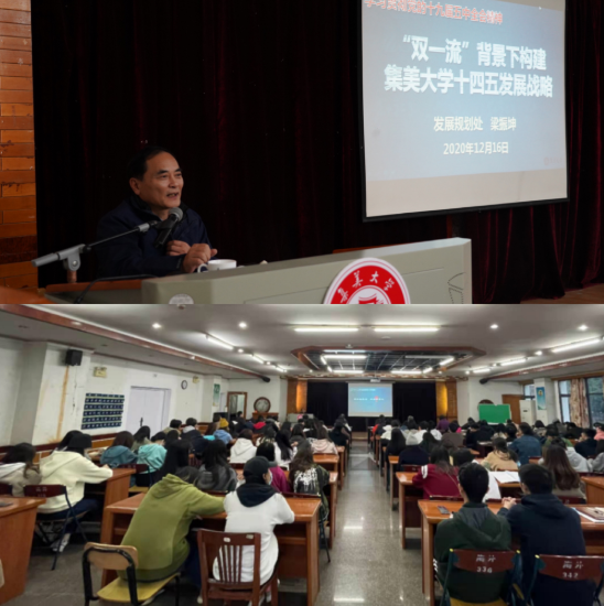 12月16日下午,海外教育学院举办党的十九届五中全会精神宣讲报告会,学校规划处处长梁振坤应邀作题为《学习贯彻党的十九届五中全会精神——双一流背景下构建亚洲中文精品乱码“十四五”发展战略》的专题报告。报告会由学院党委书记吴建平主持,全院教职工、学生党员以及入党积极分子聆听了报告。