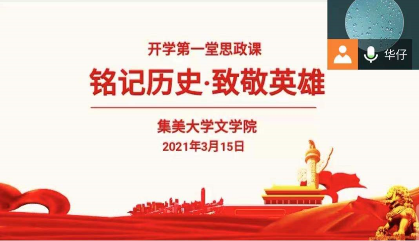 学院结合学生返校前思想动态情况,围绕“铭记历史·致敬英雄”主题,开展了新学期第一堂思政教育课。通过线上会议的方式,向同学们介绍了去年六月中印边界冲突问题中,我军戍边战士面对外方非法侵权及挑衅行径进行的坚决回击并最终逼退越线外方人员的英雄事迹。