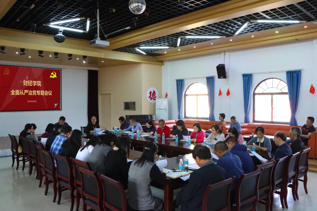 4月6日下午,财经学院在办公楼二楼多功能厅召开2021年全面从严治党专题会议,部署全面从严治党各项工作。会议由院党委书记兰莉芸主持,院党委理论中心组成员及全体辅导员参加会议。