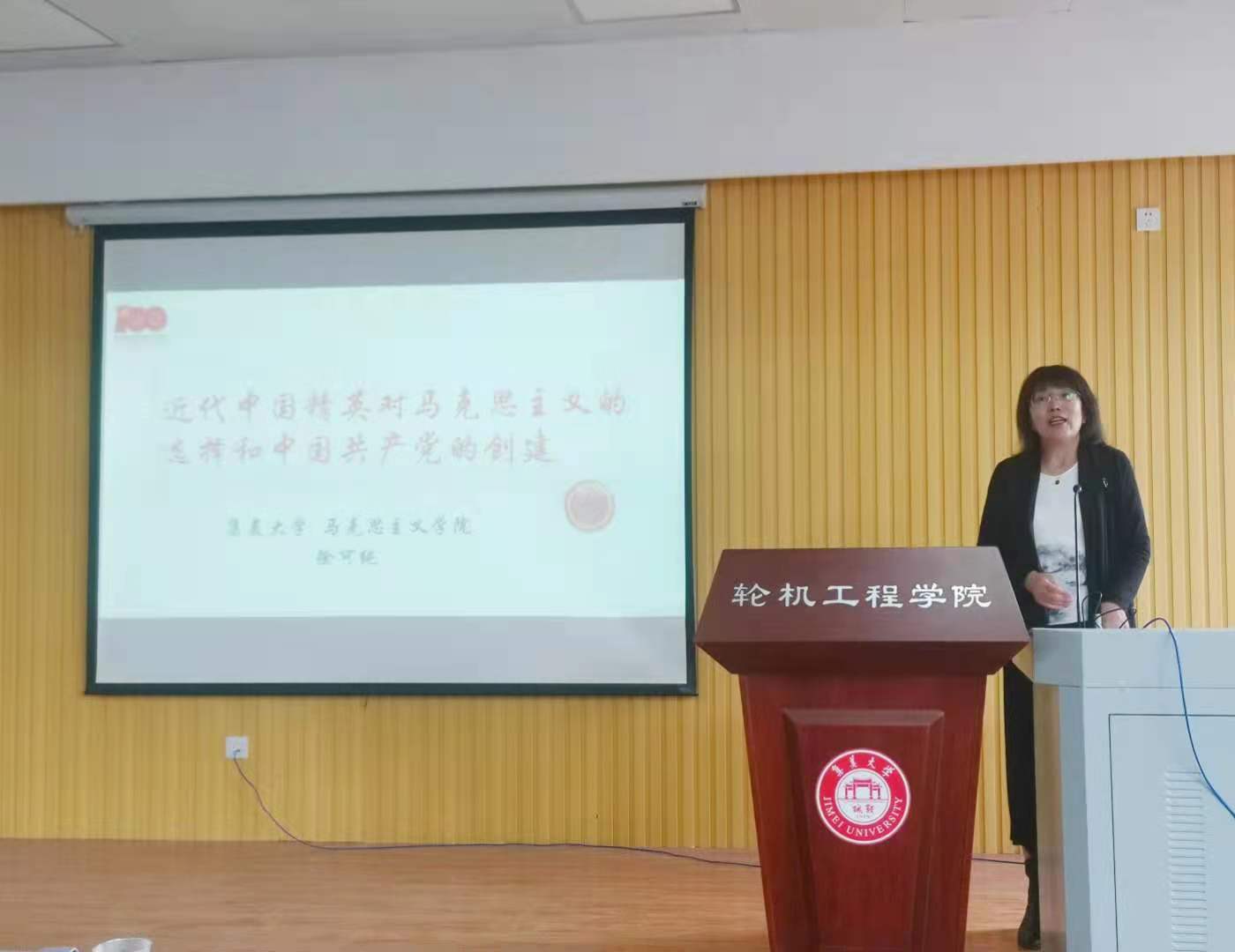 近日,轮机工程学院邀请马克思主义学院副教授徐可纯主讲《近代中国精英对马克思主义的选择和中国共产党的创建》专题讲座。讲座由学院党委书记郁军态主持,全院教职工参加学习。