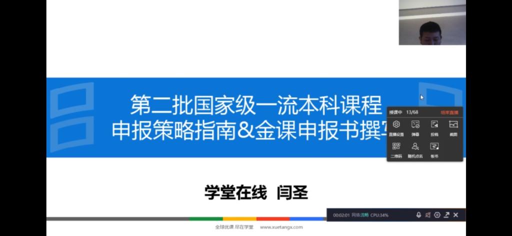 4月27日,教师发展中心开展了“第二批国家级一流本科课程申报策略与申报书撰写”线上分享会。分享会由学堂在线高级课程运营经理闫圣主讲,我校近70位教师参会。
