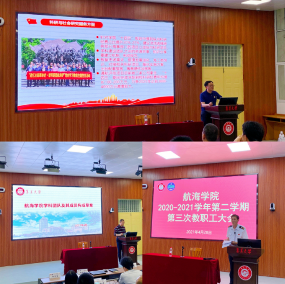 4月28日,航海学院召开2020—2021学年第二学期第三次教职工大会,全体教职工参加本次会议。
