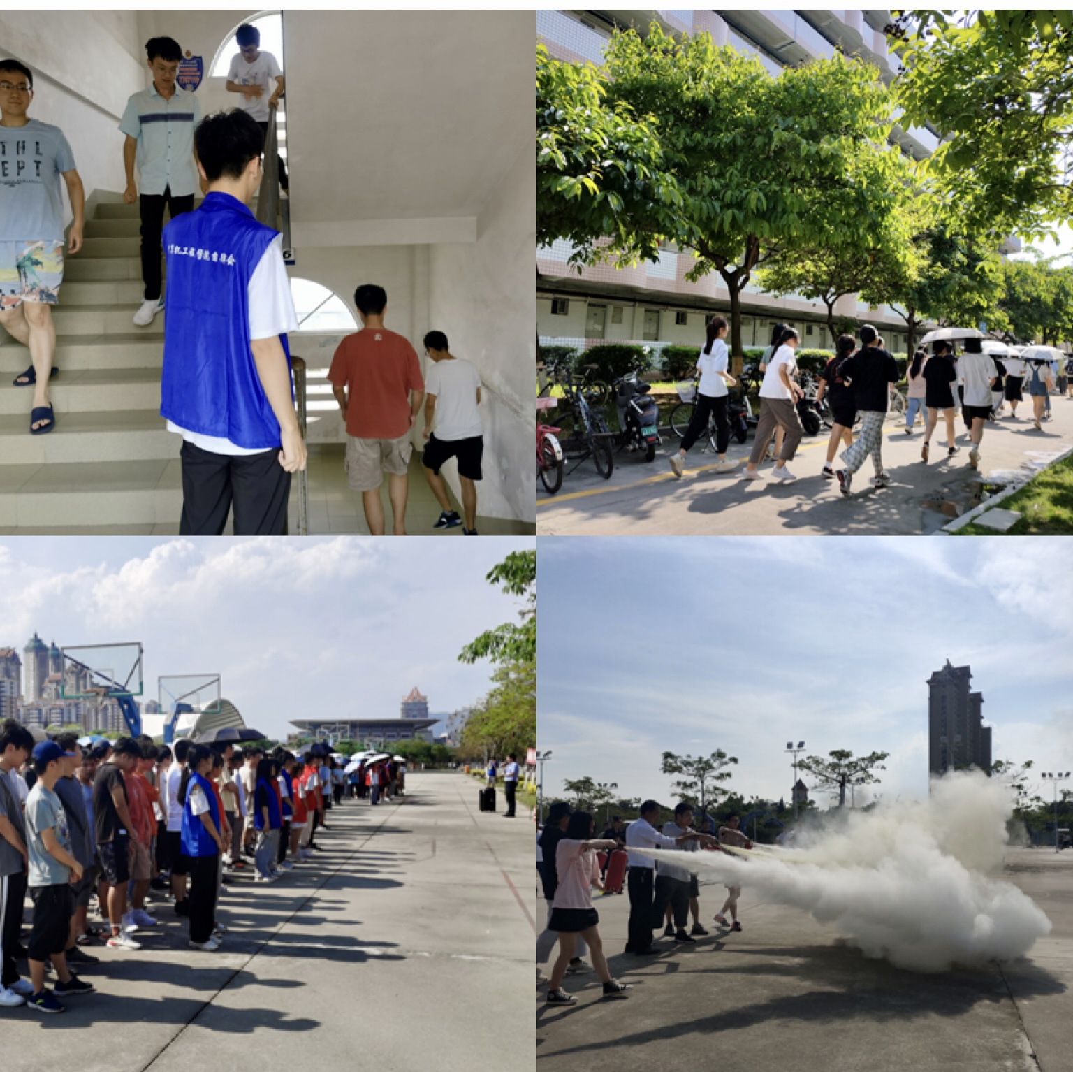 下午3时,演练警报准时响起,五社区各宿舍楼同学按照演练预案,在各楼层安全员的指挥下,迅速、有序地从各楼层往外疏散,并前往指定的疏散点集合。在随后的消防灭火演练活动中,学校保卫处开展了消防安全知识教育,指导同学们开展了实地灭火演练。学院党委副书记叶烽对此次演练做了总结发言,并就宿舍消防安全、防范电信网络诈骗、校园交通安全等工作进行了再宣传再教育。