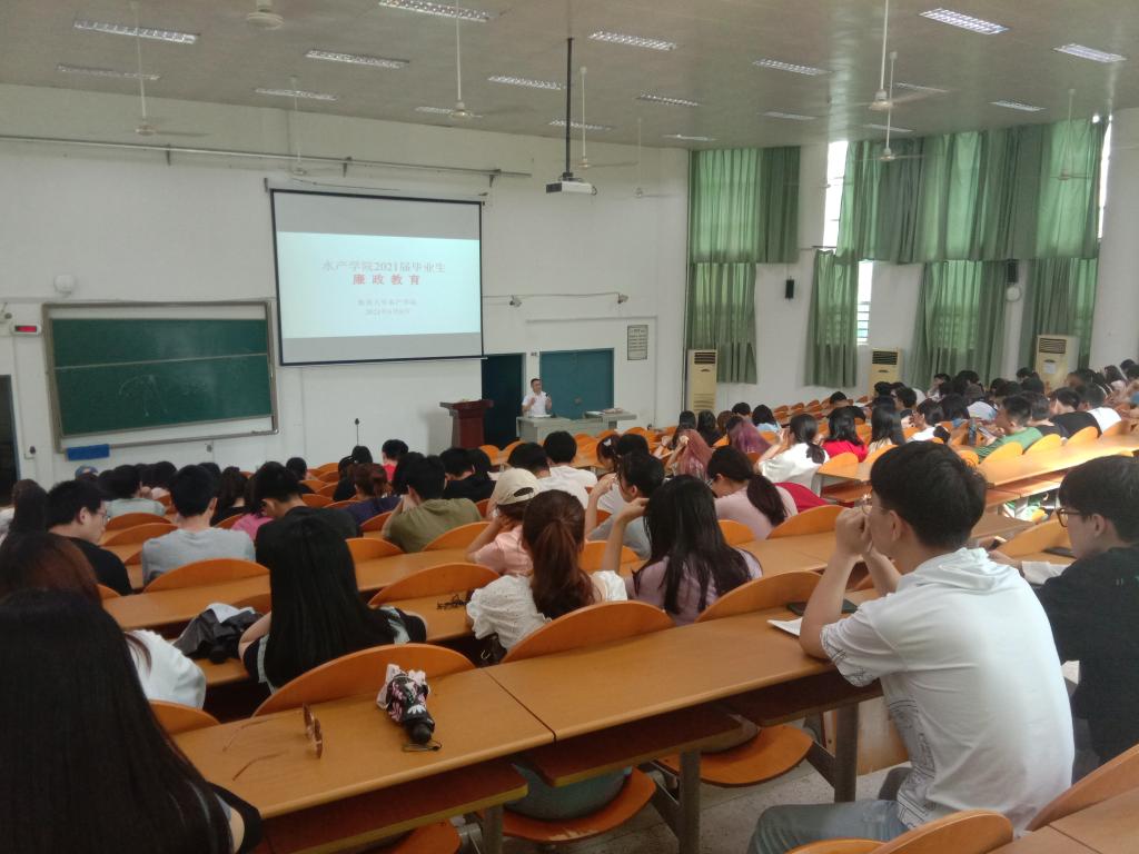 6月8日,水产学院召开2021届毕业生廉洁诚信教育大会。会议由院党委副书记、纪委书记黄庆胜主讲,全体2021届博士、硕士、本科生参加。