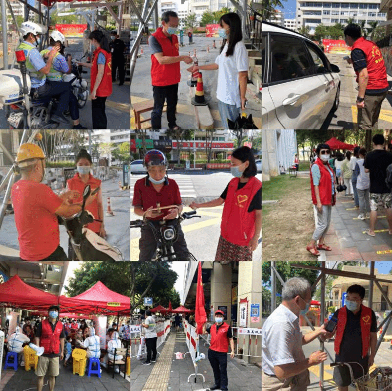 老师们在参与校门口值班站岗时,认真对每一位进入校园工作人员进行测温、查看健康码、督促刷校园卡,对不符合进校要求的人员进行劝阻,及时消除疫情进入校园的风险和隐患,确保校内学生的安全,为学生的身体健康构筑了一道严密的防线。社区安全与校园安全密切相连,保证社区居民安全也是阻断疫情向校园蔓延的风险。有的老师积极参与社区志愿服务,帮社区居民测量体温、查看健康码、核酸检测时维持秩序,为核酸检测工作人员提高工作效率。