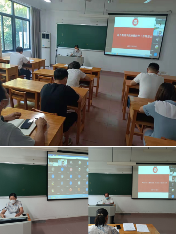 9月29日下午,海外教育学院召开疫情防控工作推进会。会议由学院党委书记吴建平主持,全院教职工通过线上线下相结合的方式参加。