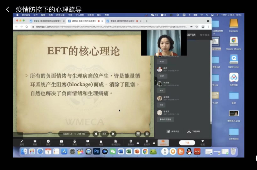为持续推进关注学院疫情防控期间美术与设计学院学生心理健康工作,提高学院全体学生的心理健康素养,提升学习及生活中各种不良情绪的应对能力,学院于10月1日下午特邀国家二级心理咨询师叶斐通过课堂派开展《疫情防控下的心理疏导》线上讲座 ,学院全体师生共700余人参加了此次讲座。