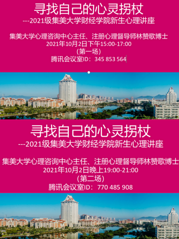 为提高大学生心理素质和心理健康指数,帮助同学们缓解当前疫情形势下的心理压力,保障自身心理健康,10月2日,财经学院于线上开展“寻找自己的心灵拐杖”新生心理健康教育讲座。校心理咨询中心主任、注册心理督导师林赞歌应邀主讲,院心协指导老师练亚芸、各系辅导员及2021级全体新生参加。