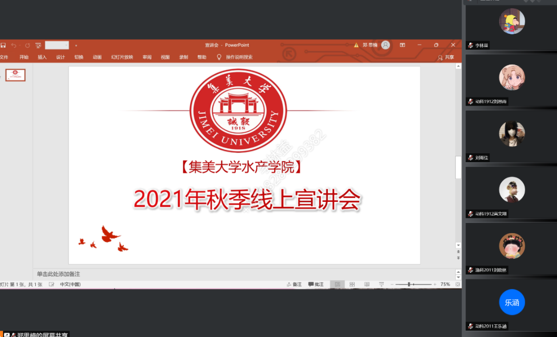 10月10日,水产学院举办2021年毕业生秋季线上就业宣讲会,以更好的推动学院毕业生就业工作,增进毕业生与行业内单位的了解与交流。