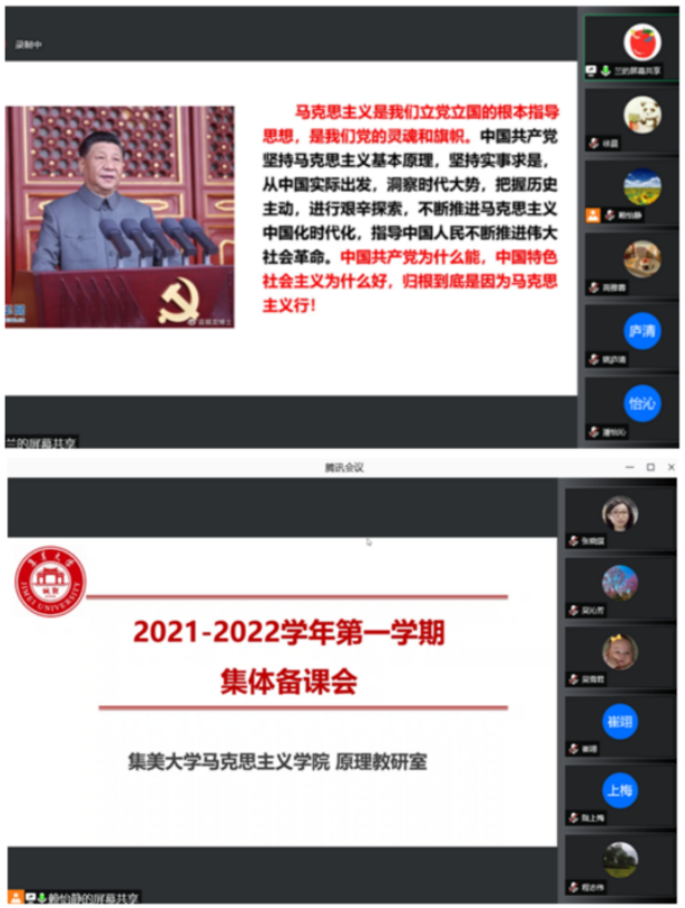 为学习贯彻习近平总书记“七一”重要讲话精神,吃准吃透2021年版思政课新教材,切实提升课程教学实效,近日,马克思主义学院4个教研室通过线上会议方式分别举行学习“七一”讲话精神暨新教材集体备课会。