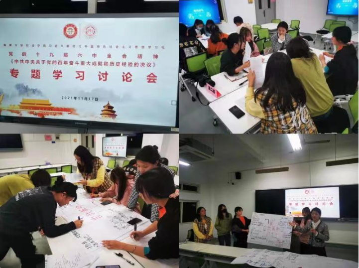 近日,财经学院习近平新时代中国特色社会主义思想学习社于文津楼209组织学习党的十九届六中全会精神,并进行专题讨论。