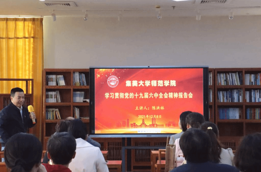 12月8日下午,师范学院举办《在新的赶考路上创造新的辉煌——党的十九届六中全会精神宣讲》的专题报告会,组织部副部长、党校专职副校长陈洪林应邀主讲。全院教职工参加了本次学习,讲座由院党委书记田建和主持。
